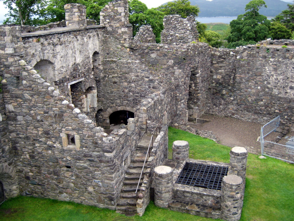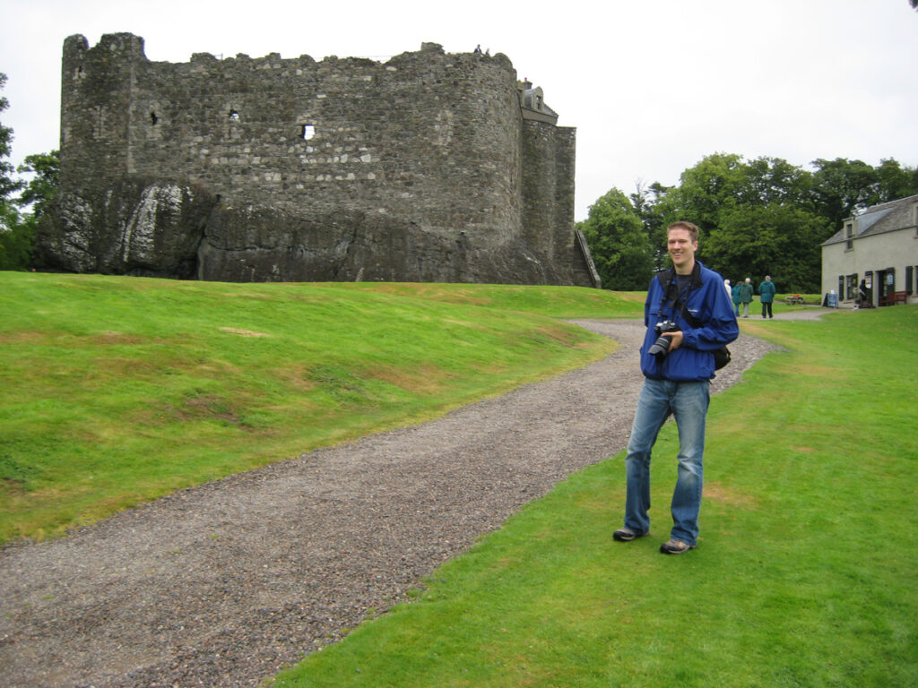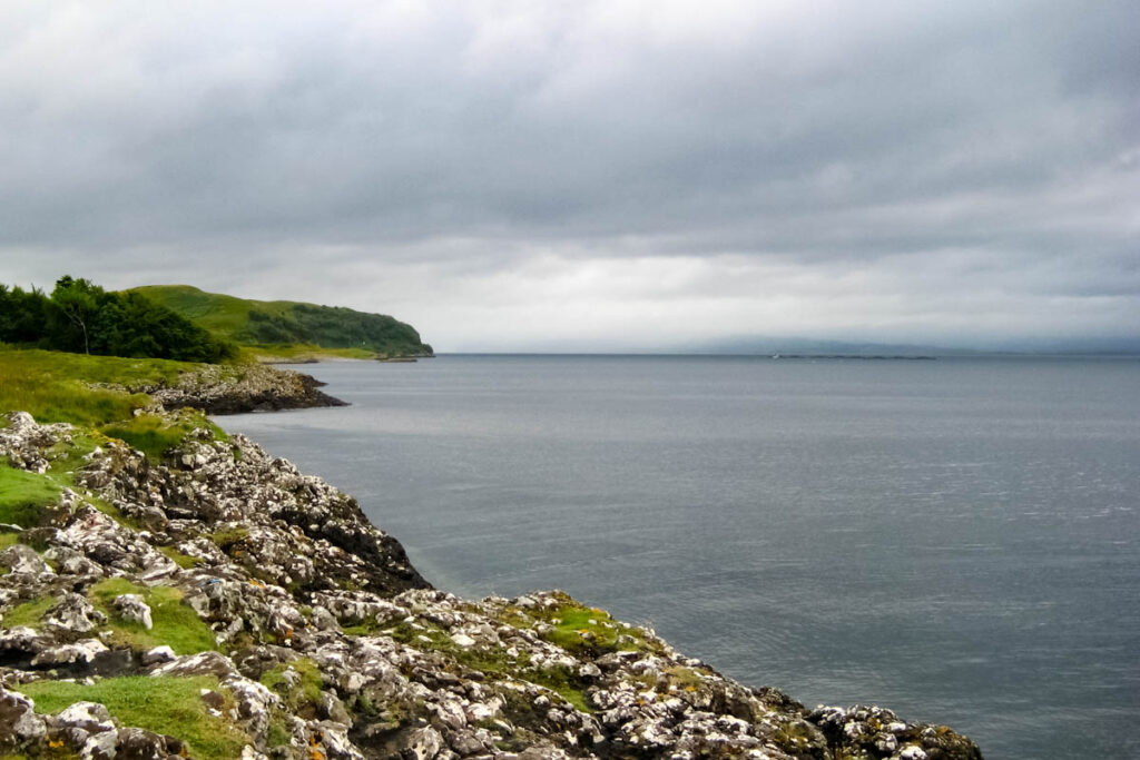 The ruins, dating to the 14th century, remain unrestored. An “enter at your own risk” warning sign didn’t deter us from going in. The main structure, covered in vines, looked like it was being absorbed by the hill and its plants. I climbed a little ways up the narrow steps to see what was up there; there wasn’t much left, but I could imagine how it might’ve, at one time, accommodated people. The view of the bay was incredible. I was exhilarated by seeing a different side of Scotland.